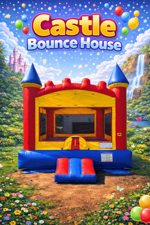 Turn your party into a magical kingdom with our Castle Bounce House! Standing tall with bright, royal colors and charming turrets, this inflatable is perfect for little princes, princesses, and brave knights ready for adventure.