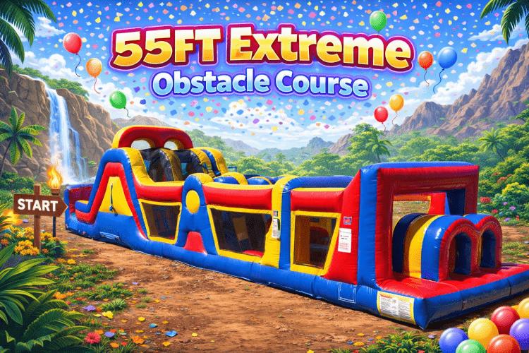Get ready for non-stop action with our Extreme 55-Foot Obstacle Course — the ultimate inflatable challenge for guests of all ages! This massive course is packed with exciting features, including crawl-through tunnels, pop-up barriers, climbing walls, and a thrilling slide to the finish line.